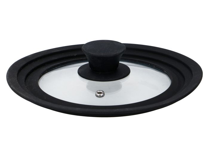 Le couvercle en verre Alpina avec bord en silicone s'adapte sur des casseroles de 16, 18 et 20 cm de diamètre.