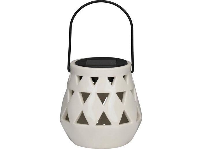 La lanterne solaire en céramique Arti Casa est une lampe de table élégante qui se recharge grâce à l'énergie solaire et, placée devant votre tente ou caravane, apporte une lumière chaleureuse à votre campement.