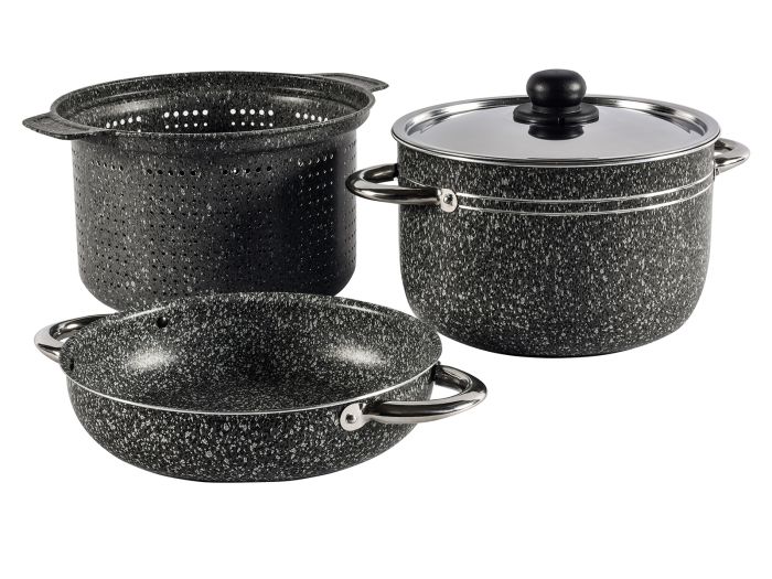 Le Beaver Fast-a-pasta 22 est un lot de 2 casseroles pour faire des pâtes. Ces casseroles sont en aluminium à 99,5 % et ont un revêtement antiadhésif. La casserole a une capacité maximale de 5 litres.