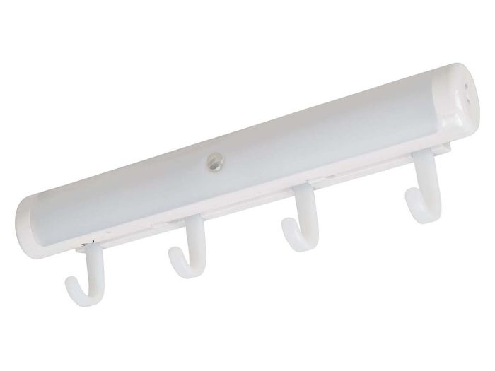 Une lampe à détecteur très pratique avec crochet. Facile à fixer sur une surface plane à l'aide de la bande adhésive au dos ou de vis, ou à suspendre verticalement à l'aide du crochet. Idéal pour une armoire dans la caravane ou le camping-car. Les crochets ont une capacité de charge maximale de 1 kg et conviennent pour suspendre des clés, des sacs, etc. Lorsqu'il y a un mouvement devant le capteur, la lumière s'allume. Il existe également un mode où la lumière reste allumée ou éteinte en permanence. Rechargeable avec le câble USB inclus.
