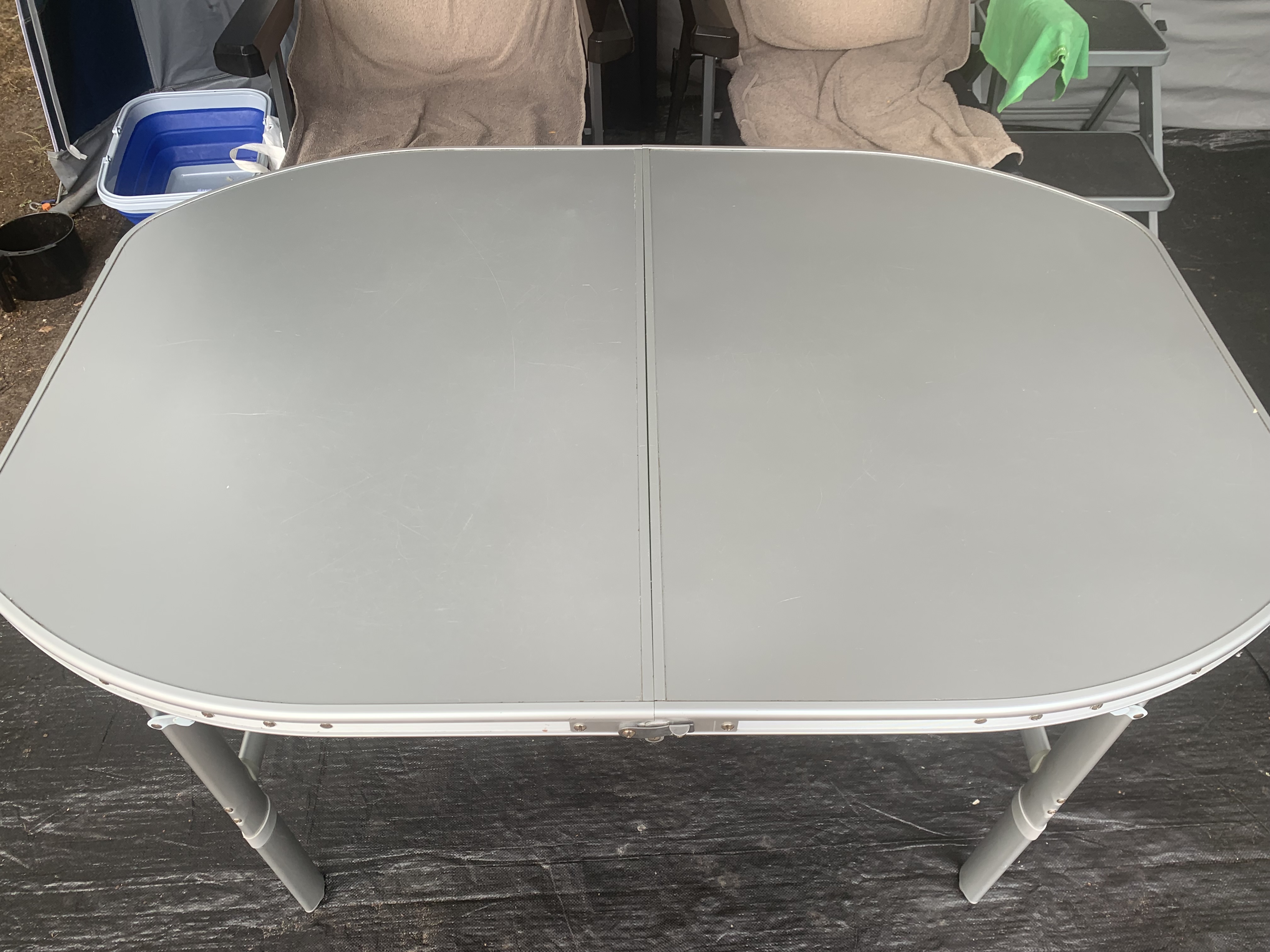 - DE campingtafel voor je gezin.Wij hebben de kleinere versie al jaren!! Hij zit inderdaad onder de krassen, maar dit kan je ook voorkomen door een tafelkleed te gebruiken. Tafel is weerbestendig en super stabiel. Netje voor je leesboekjes ed is ideaal en kan best wat gewicht dragen. Denk dat wij hem al 10 jaar hebben en op de krassen en misschien een klein deukje na, is hij nog super goed. Nu met twee kids gaan we dus dezelfde kopen, maar dan een maatje groter.
