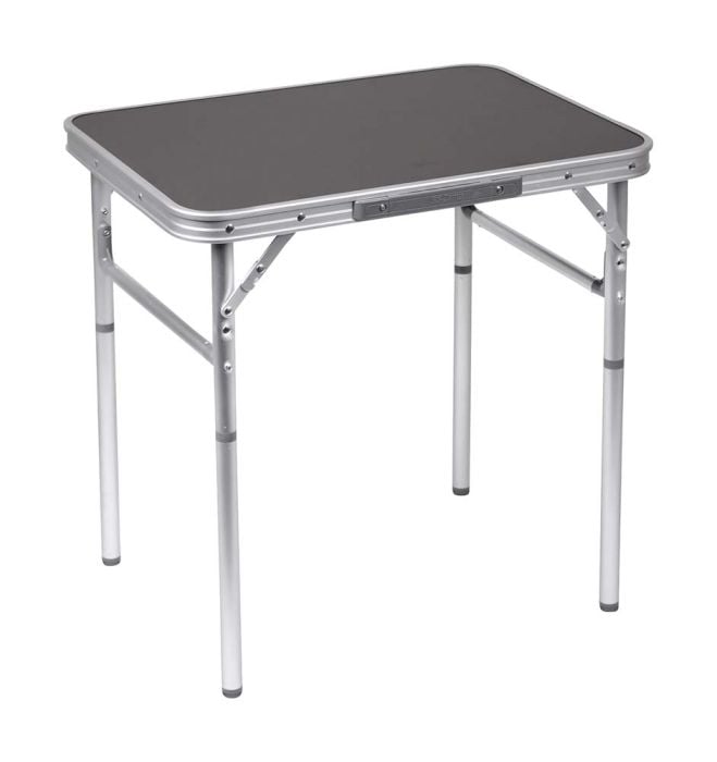 Une table de camping extrêmement stable. Cette table a des pieds amovibles et peut donc être pliée facilement et de manière compacte. Fabriqué en aluminium léger. Les pieds sont réglables en hauteur (25/60 cm) et disposent de vis de réglage pour un réglage précis. Replié (LxlxH) : 60x45x3,5 centimètres.