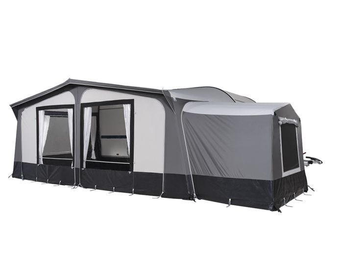 Une extension est un atout précieux pour agrandir votre espace de vie sous votre auvent. L'extension Nova 532 bénéficie d'une conception ingénieuse et arbore la même élégance que les auvents Nova 300. Grâce à elle, vous agrandissez considérablement votre espace de vie sous l'auvent. Cuisine, coin salon, aire de jeux ou espace de rangement : à vous de choisir ! L'extension s'intègre parfaitement aux auvents Nova, grâce à une conception harmonieuse. Il vous suffit d'ouvrir la fermeture éclair d'une paroi latérale de l'auvent pour y insérer facilement l'extension. Les barres de tension permettent un réglage précis. Les tendeurs élastiques assurent une répartition uniforme de la tension sur toute la longueur de l'extension. Le toit de cette extension, d'une seule pièce, est parfaitement étanche. Cette extension est équipée de série d'une grande fenêtre de ventilation et d'une structure robuste en acier de 25 mm pour un montage facile. La paroi latérale amovible de tous nos auvents Nova étant de même dimension, l'extension s'y adapte toujours. Avec l'extension Nova 532, la qualité est garantie et vous gagnez un espace considérable ! Envie d'ajouter facilement une pièce supplémentaire à votre auvent ? Choisissez l'extension Nova 532 : plus d'espace en un instant !