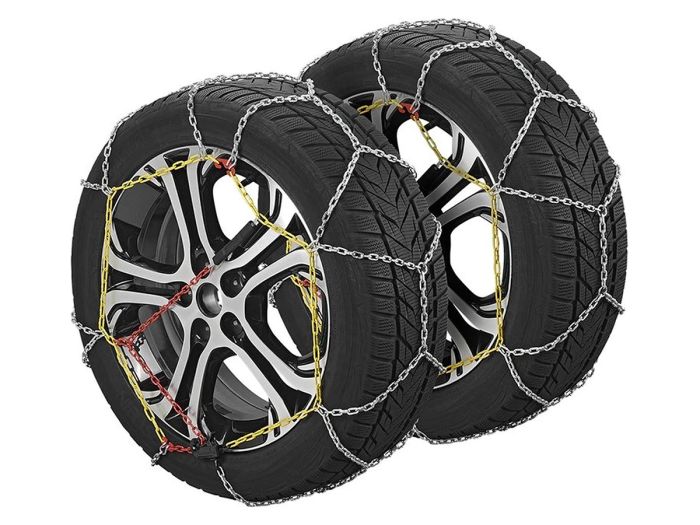 Les chaînes à neige, avec leurs maillons de 9 mm de large, sont vendues par lot de deux, avec des maillons de réparation, des gants en plastique, une notice d'installation claire et une housse de transport. Elles s'installent facilement sans déplacer le véhicule. Convient aux tailles de pneus suivantes : 155/80-13, 165/70-13, 185/60-13, 195/55-13, 195/50-13, 225/45-13, 145/80-14, 155/70-14, 165/65-14, 175/60-14, 165/55-14, 175/55-14, 185/50-14, 195/45-14, 205/45-14, 125/80-15, 135/80-15, 145/70-15, 145/65-15, 155/60-15, 165/55-15, 165/50-15, 185/45-15, 180/65-315, 170/65-340, 160/65-365 155/80R13, 165/70R13, 185/60R13, 195/55R13, 195/50R13, 225/45R13, 145/80R14, 155/70R14, 165/65R14, 175/60R14, 165/55R14, 175/55R14, 185/50R14, 195/45R14, 205/45R14, 125/80R15, 135/80R15, 145/70R15, 145/65R15, 155/60R15, 165/55R15, 165/50R15, 185/45R15, 180/65R315, 170/65R340, 160/65R365 - Les chaînes à neige peuvent être utilisées pour les véhicules avec et sans ABS