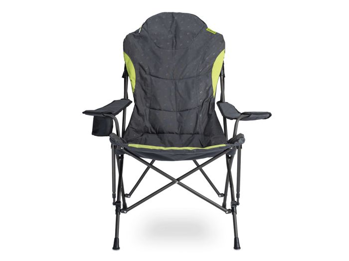 La Stargazer est une chaise de camping luxueuse. Son dossier extra haut offre un excellent soutien et est entièrement rembourré pour un confort optimal. L'ouverture zippée sur le dessus offre un espace de rangement idéal pour votre sac de transport et forme un coussin intégré. Les accoudoirs réglables vous permettent d'ajuster la hauteur des accoudoirs à chaque utilisateur. Un porte-boisson intégré et isolé permet de garder vos boissons au frais pendant les chaudes journées d'été.