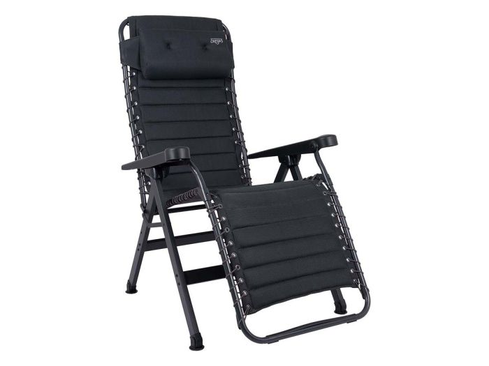 Son revêtement Air-Select entièrement rembourré, fixé par des élastiques, garantit un maintien optimal et une assise ultraconfortable. Son rembourrage spécial et respirant ne retient pas l'humidité. Il permet ainsi au fauteuil de sécher étonnamment vite et de résister même à une légère averse. C'est le fauteuil de relaxation idéal pour le camping, le jardin ou vos voyages. L'appui-tête assorti ajoute une touche de luxe supplémentaire et parachève vos moments de détente.