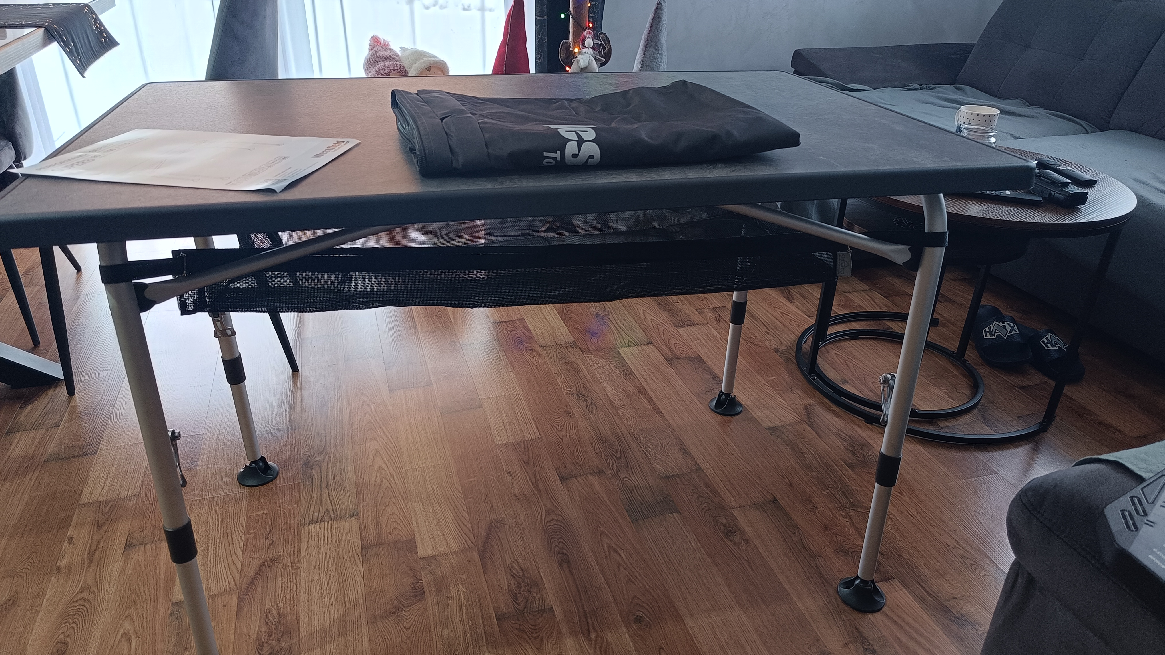 Le filet de rangement s’attache facilement à une table pliante, grâce à la fixation velcro. Le filet de rangement est conçu pour les tables Crespo 352 et 272, mais peut bien sûr être utilisé pour d'autres tables. Veuillez tenir compte de la taille du plateau de votre table. Il doit être un peu plus grand que 85 x 47 cm.
