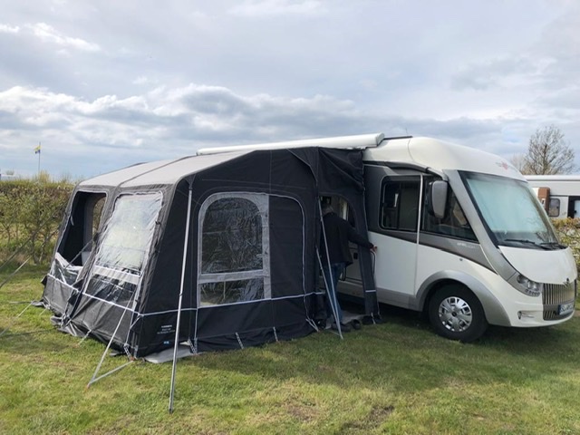 Comme la partie arrière de l’auvent ne comporte pas de tubes pneumatiques, vous pouvez également utiliser l’auvent camping-car lorsque vous avez une porte coulissante. Le Rally Air All-Season Drive-Away convient aux camping-cars d’une hauteur comprise entre 220 et 300 cm. Il s’adapte donc parfaitement, par exemple, au fourgon Fiat Ducato.