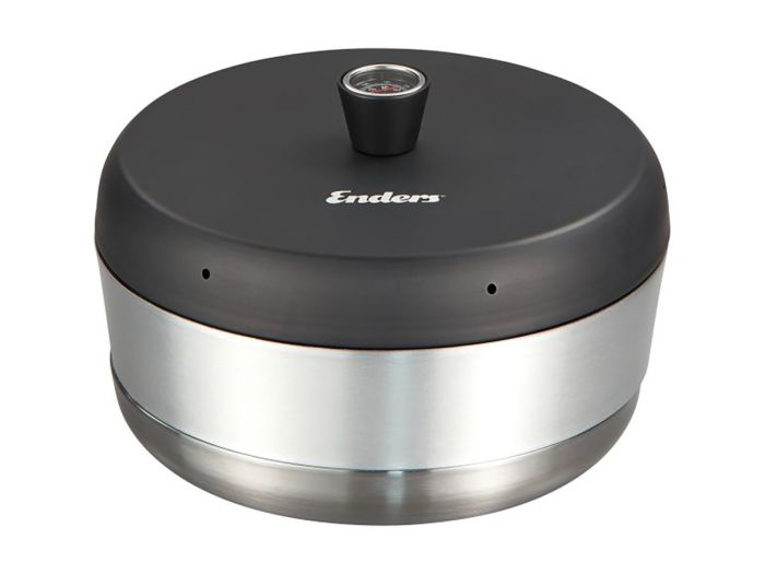 Le four de camping mobile Enders se compose de trois parties : un socle en acier inoxydable, un moule de cuisson en aluminium doté d'un revêtement céramique antiadhésif, et un couvercle en aluminium avec un revêtement spécial et des trous de ventilation. Lorsque toutes les pièces sont utilisées ensemble, elles fournissent une chaleur tant inférieure que supérieure.