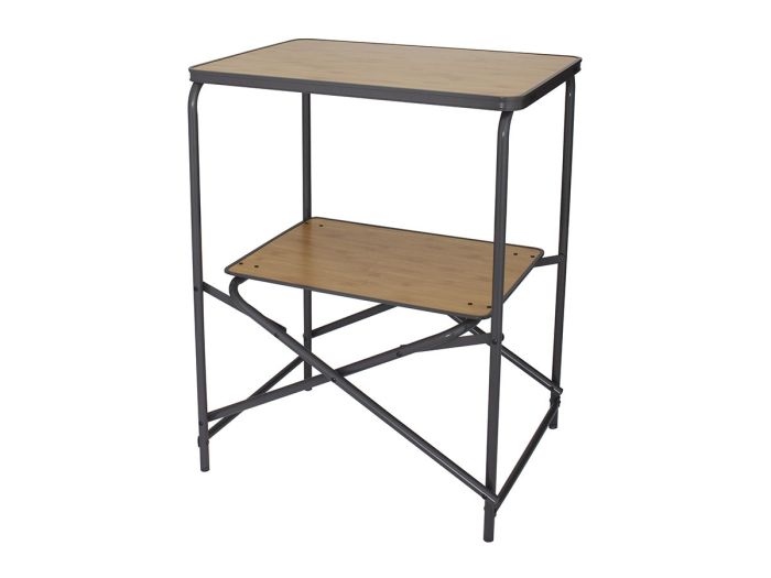 Son plateau en MDF robuste offre une surface de travail stable pour préparer les repas, tandis que le niveau inférieur est idéal pour ranger casseroles, vaisselle et ustensiles de cuisine. Malgré sa construction solide, ce meuble de rangement est rapide et facile à monter, ce qui le rend parfait pour les campeurs, les fourgons aménagés et les amateurs de plein air.
