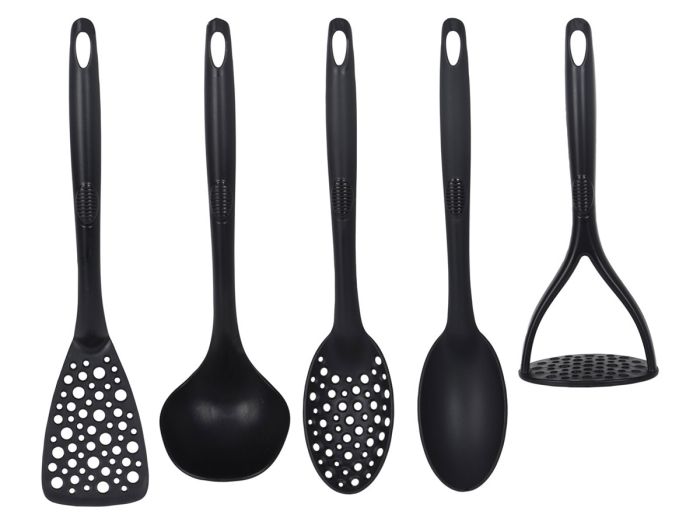 Lorsque vous cuisinez, il est utile d'avoir divers ustensiles. Par exemple une spatule, une cuillère de service ou une louche. Ce lot de Excellent Houseware se compose de 5 ustensiles différents pour cuisiner et faire des gâteaux.