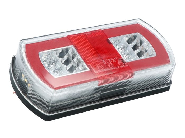 Feu arrière 12/24 V LED Carpoint, droit. Homologué CE. 5 fonctions : feu stop, clignotant, feu arrière, éclairage de plaque d'immatriculation, réflecteur. Visserie incluse, entraxe 100 mm. Dimensions 165 x 80 mm.