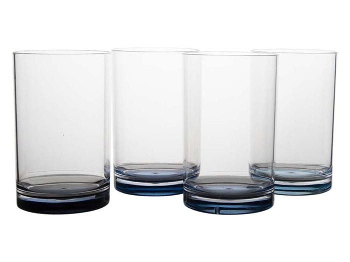 Un verre d'eau élégant en différentes couleurs bleues de la collection Colour line. Pratiquement incassable grâce au matériau SAN de haute qualité. Composé d'un ensemble de 4 pièces. Très facile à nettoyer et durable, ce qui rend le verre très viable. Très léger et résistant aux rayures. Capacité : 320 ml.
