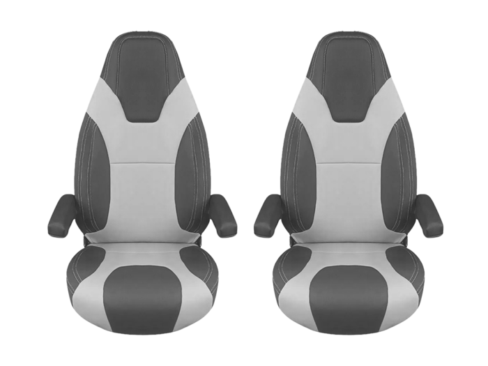 Paire de housses pour camping-cars et caravanes sur la base du siège Ducato Captain. Il s'agit d'une housse réalisée sur mesure exclusivement pour ce modèle de siège, avec une excellente finition et sans modifier l'aspect du siège d'origine. L'appui-tête viscoélastique et le rembourrage spécial à la base du siège rendent vos voyages plus agréables.