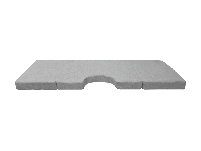 Le matelas pliant est divisé en trois parties, ce qui permet de le plier pour en faciliter le transport et essayer de réduire l'espace au maximum.