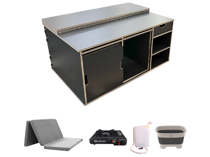 -Accessoires inclus : Pour une expérience complète, nous avons inclus des accessoires essentiels tels qu'une cuisine portable, un réservoir d'eau (20L), un évier et un matelas 180x120x8cm (5cm de mousse extra-ferme (28kg/m3) + 3cm de mousse à mémoire de forme). Tout ce dont vous avez besoin est dans le kit, vous permettant d'économiser du temps et de l'argent.