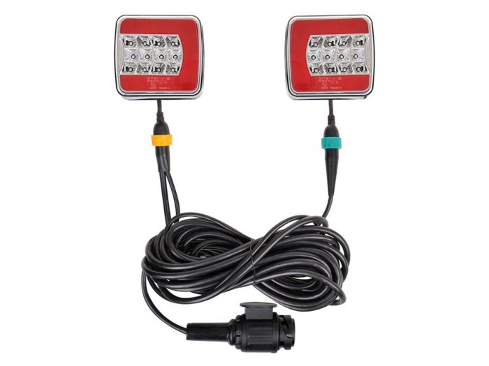 Ce kit d'éclairage LED 4 fonctions pour remorque offre un éclairage sûr et fiable pour remorques, caravanes et autres véhicules. Grâce à sa fixation magnétique puissante, le kit s'installe rapidement et se retire facilement, sans perçage ni vissage. - Éclairage LED complet avec 4 fonctions : feu arrière, feu stop, clignotant et éclairage de plaque d'immatriculation. Les LED puissantes garantissent une longue durée de vie et une faible consommation d'énergie. - Fixation magnétique : aucune vis requise. Aimants puissants pour une installation rapide et sûre. Facile à retirer ou à déplacer, idéal pour une utilisation flexible. - Câblage et connexion pratiques : câble principal de 7,5 mètres + câble de raccordement de 2,5 mètres pour une flexibilité optimale. Prise 13 broches, compatible avec de nombreux véhicules. - Caractéristiques techniques : Tension : 12 V. Avec aimants pour une installation facile. Commandez dès maintenant et profitez d'un kit d'éclairage LED fiable, efficace et facile à installer pour votre remorque !