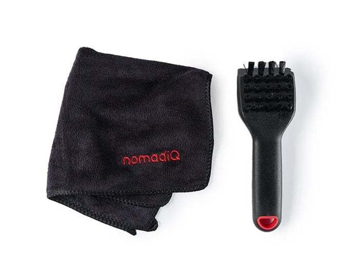 Le kit de nettoyage développé par nomadiQ facilite le nettoyage du barbecue nomadiQ. La brosse permet même d'atteindre les recoins les plus difficiles d'accès. Les coins de la brosse de nettoyage s'adaptent exactement aux crêtes de la grille, ce qui vous permet de gratter sans effort la graisse et la saleté accumulées.