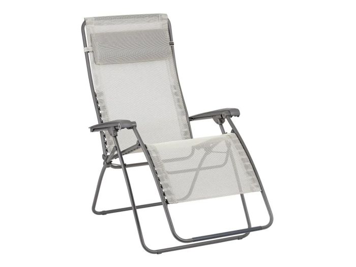 Le fauteuil relax Lafuma RSXA CLIP XL - Beige Seigle est pliable et réglable en continu.