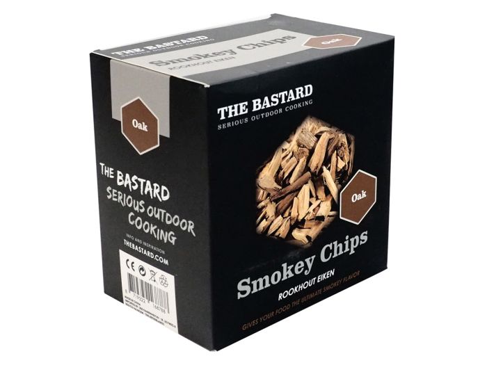 Vous souhaitez donner encore plus de saveur au plat ? Choisissez le bois à fumer de The Bastard. Il peut être utilisé pour tous les grils au charbon de bois, au gaz et électriques. Utilisez-le en combinaison avec un fumoir.