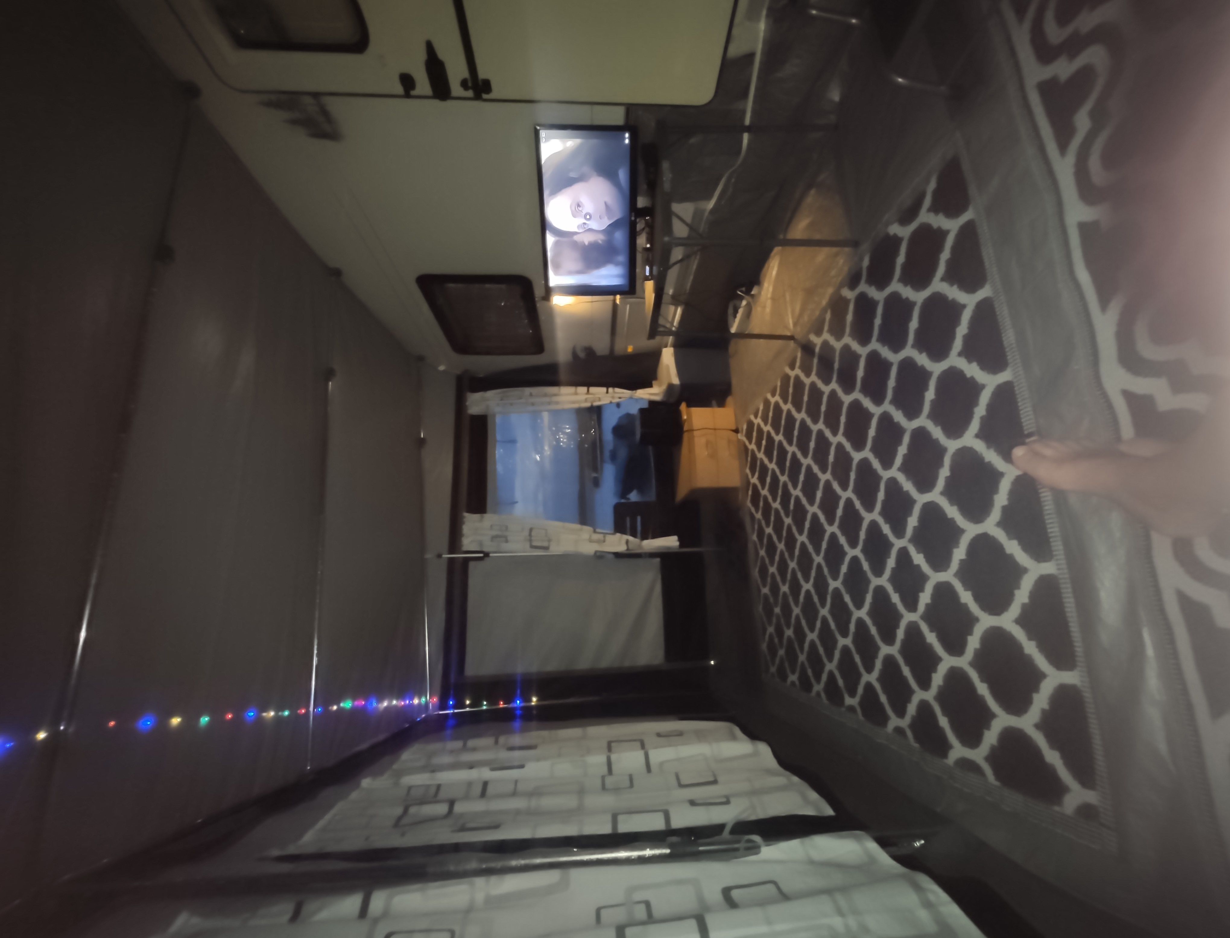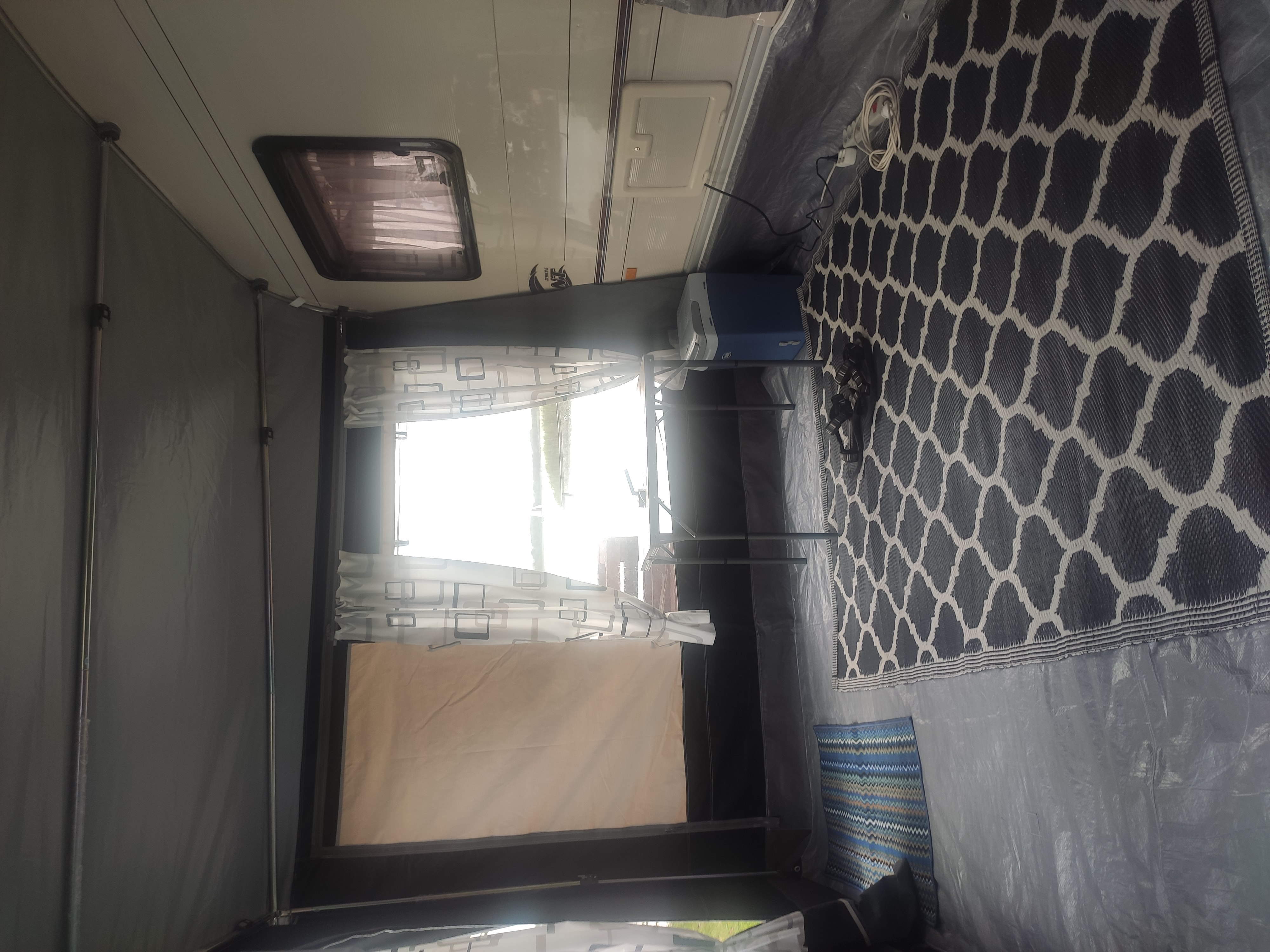 Eine Schnur am Keder zur Befestigung von (optionalen) Clips, in die Sie Dachbalken einhaken können. Dank dieser Schnur müssen Sie keine Ösen an die Wohnwagenwand schrauben, um Dachbalken zu verwenden.