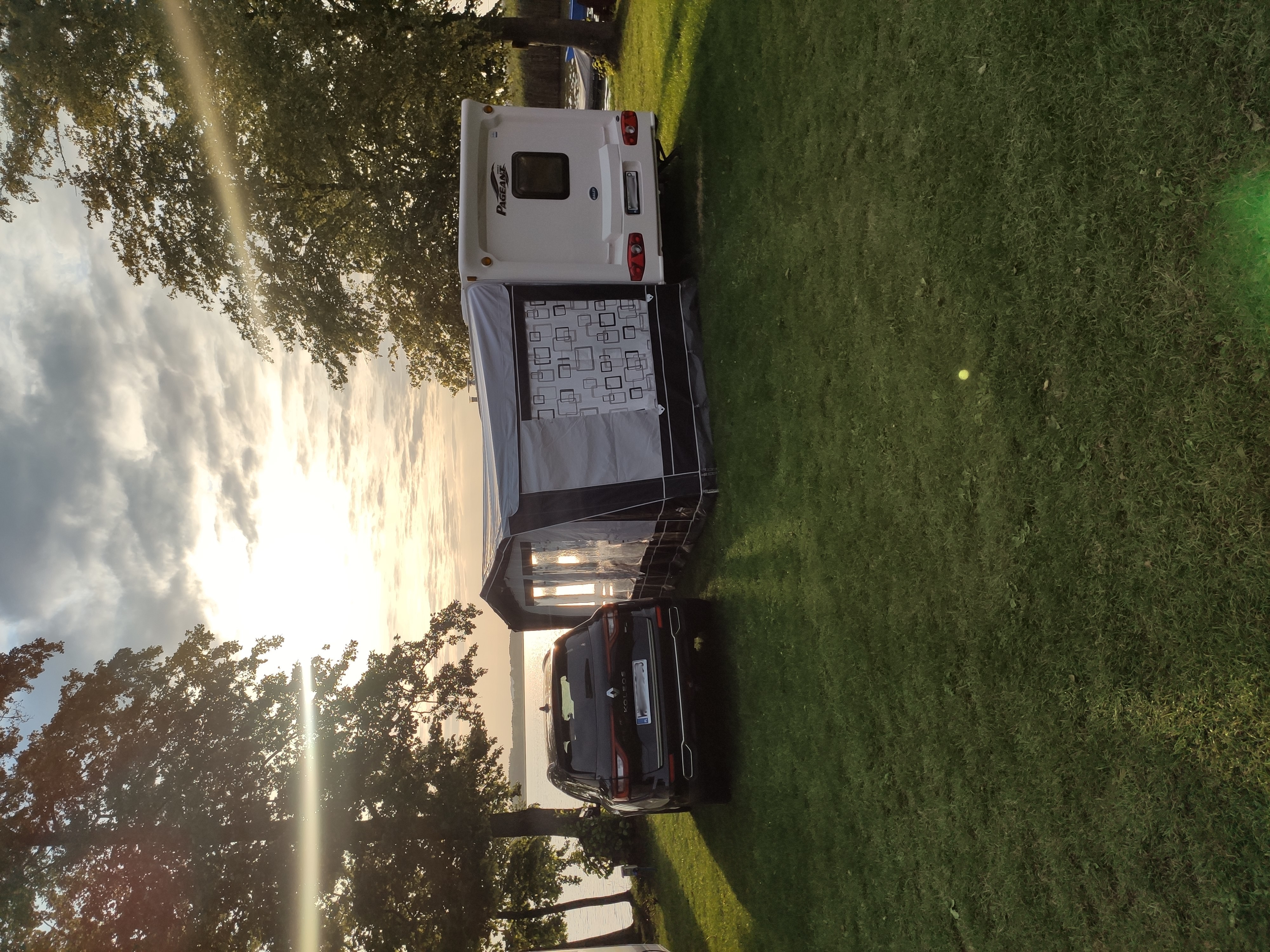 Une caravane aérodynamique est une caravane dont la partie avant est complètement inclinée vers le bas.
