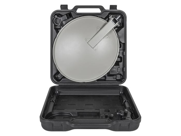Le Megasat cuvette satellite standard est constitué d'un plastique robuste et résistant aux chocs. La version standard contient une parabole de 40 cm, avec différentes possibilités de montage. La ventouse assure une fixation solide et sûre de l'antenne satellite sur toutes les surfaces lisses. S'il n'est pas possible de monter la ventouse, vous pouvez utiliser le support de mât pour la fixer à un mât satellite.