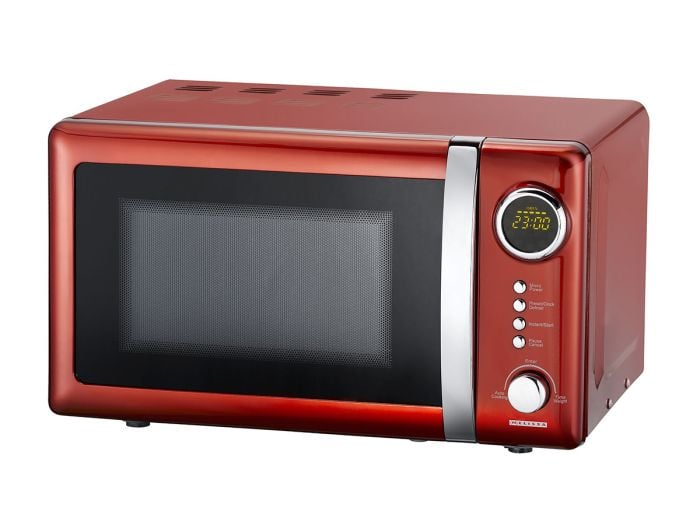 Ce four à micro-ondes électronique est conçu dans un joli design rétro avec une belle couleur rouge chili.Le four à micro-ondes est équipé d'une minuterie de 60 minutes et d'un programme de décongélation, ce qui permet de préparer les aliments congelés en moins de temps. D'une puissance de 700 W et d'une capacité de 20 L, il est parfait pour les petites cuisines grâce à sa taille compacte. Il dispose de 5 programmes et d'un écran LED facile à lire, ce qui le rend extrêmement convivial.Qu'il s'agisse de réchauffer le café, le dîner ou de faire éclater du pop-corn, il fera l'affaire.Vos avantages :Four à micro-ondes électroniqueVolume : 20 LPuissance du four à micro-ondes : 700 watts5 niveaux de puissance de micro-ondes60 min de cuissonProgramme de décongélationPlateau tournant en verre 245 mmPorte à poignéeAffichage LEDContenu de l'emballage :Four à micro-ondesplateau tournant en verreanneaux du plateau tournantmanuel + instructions de sécurité DK / SE / NO / FI / UK / DESpécifications :Marque : MelissaDimensions : 25,6 x 45,1 x 32,7 cm 25,6 x 45,1 x 32,7 cmCapacité : 20LCouleur : rouge chiliPoids : 10,1 kgAlimentation électrique : 230VEffet : 700 WLongueur du cordon : 85 cm