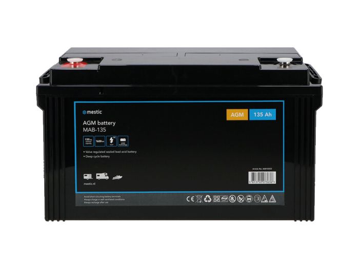 Vous recherchez donc une batterie plomb-acide qui dure longtemps et qui convient parfaitement si vous souhaitez utiliser de l'énergie pendant de longues périodes ? Dans ce cas, la batterie AGM MAB-135 de Mestic est parfaite pour vous ! Cette batterie sans entretien n'a jamais besoin d'être rechargée, il suffit de la charger.