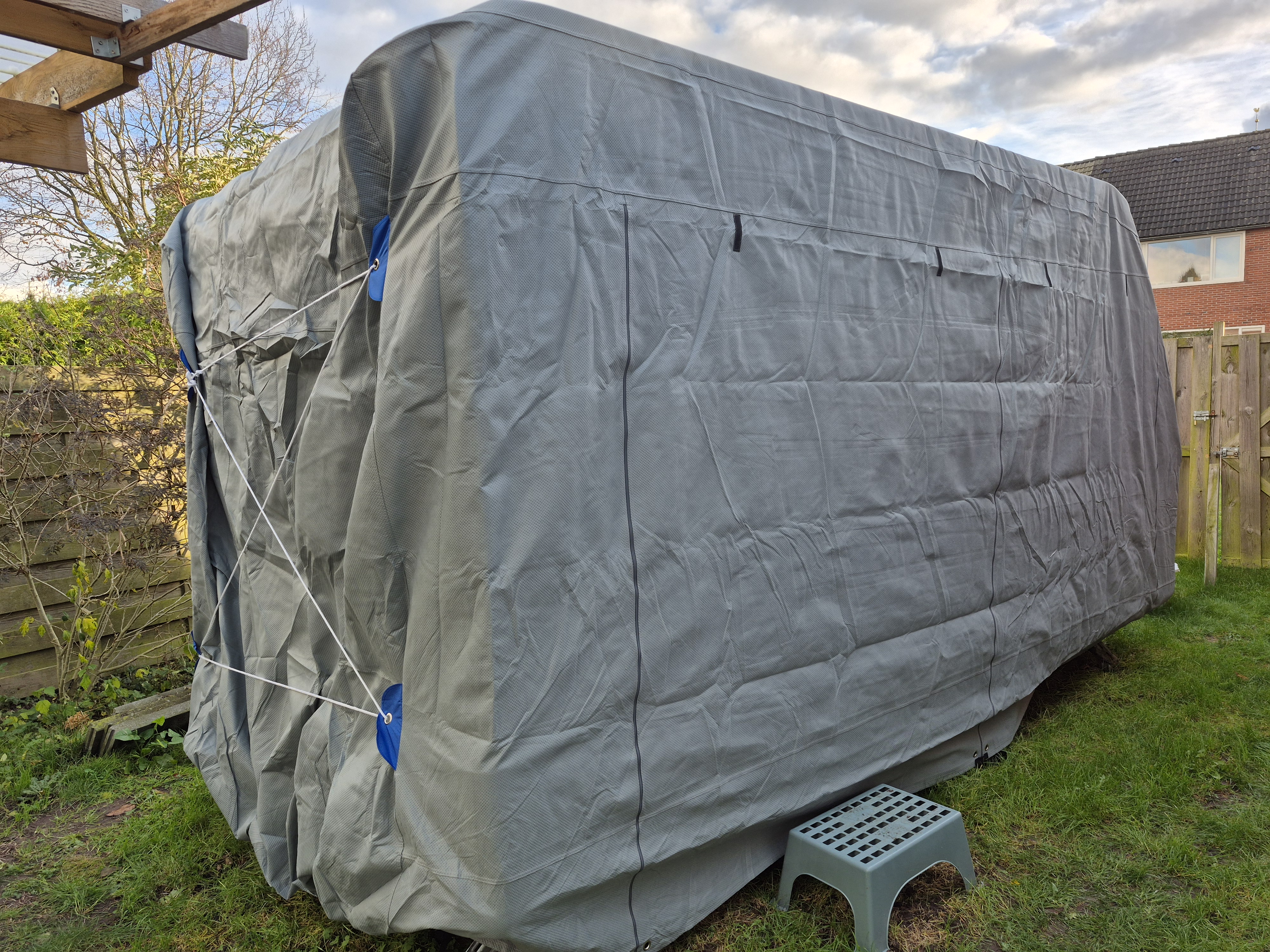 La housse 427 - 518 x 235 cm caravane Obelink est idéale pour couvrir votre caravane en hiver, par exemple.