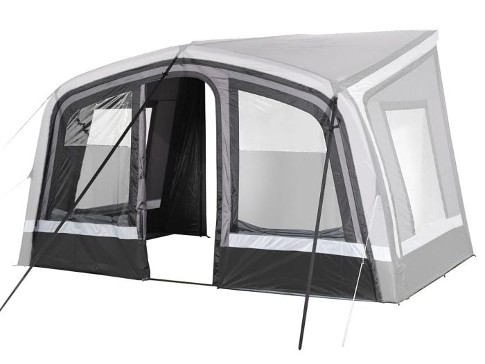 Lorsque vous combinez la paroi avant Obelink Arcade Sunroof 330 Easy Air avec l'ensemble de parois latérales Obelink Arcade Sunroof Easy Air, vous pouvez transformer la solette de caravane Obelink Arcade Easy Air en un auvent entièrement fermé.