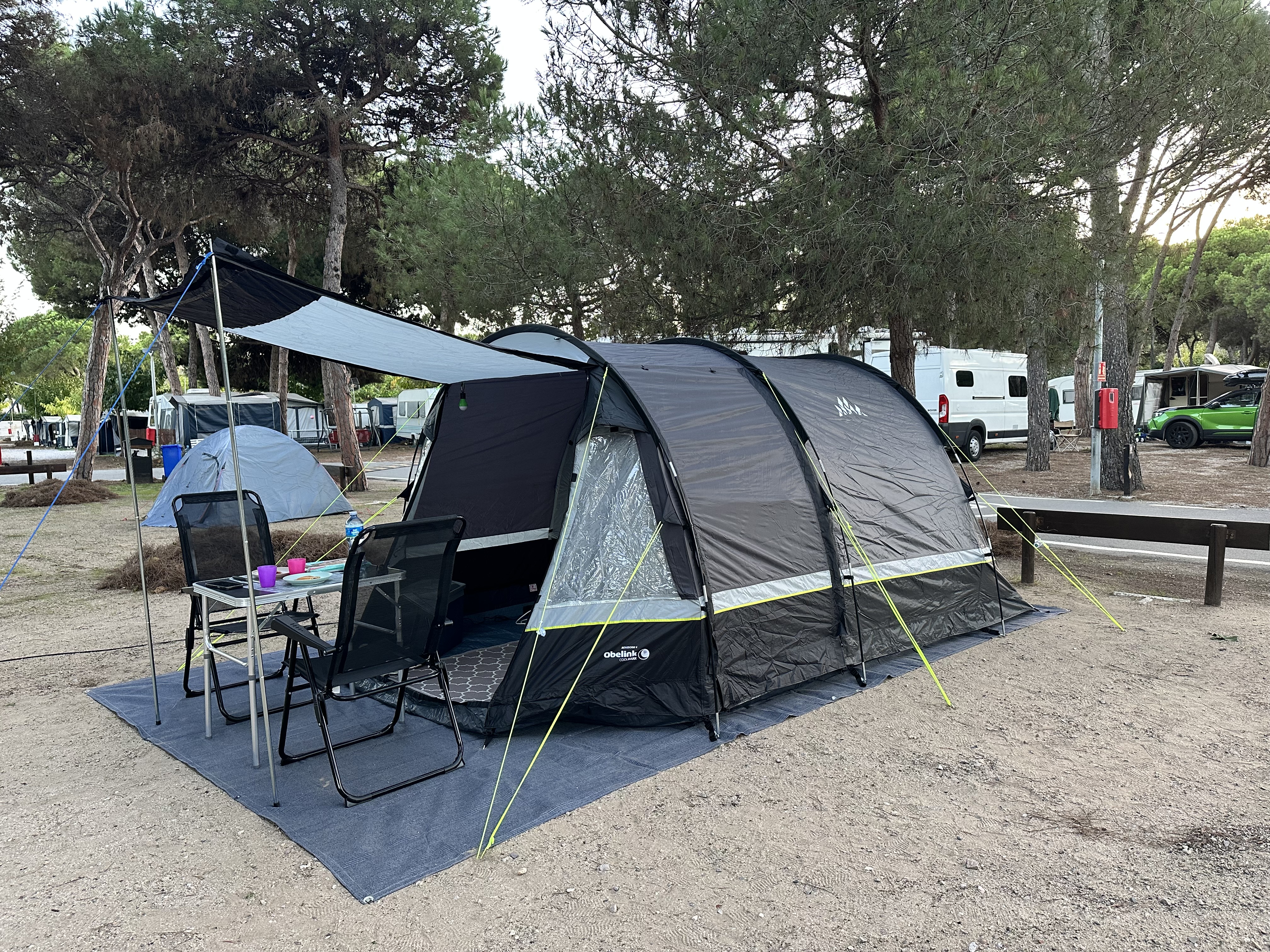 Vous recherchez une tente tunnel compacte avec une hauteur permettant de se tenir debout et des cabines de couchage occultantes pour pouvoir faire des grasses matinées ? Alors la tente tunnel Obelink Benidorm 4 CoolDark est peut-être la tente qu’il vous faut !