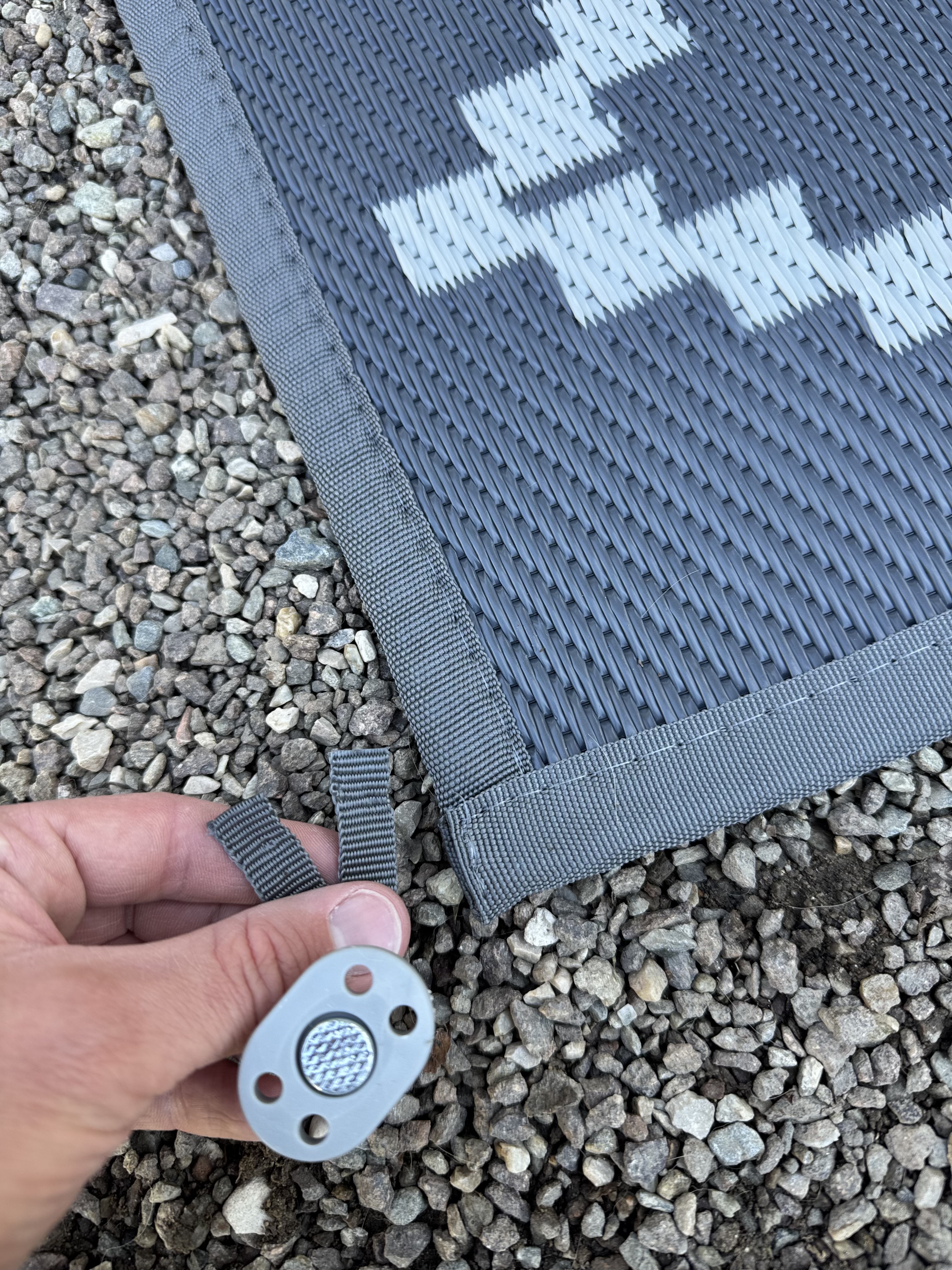 Ce tapis robuste au design moderne est résistant à la saleté, à la moisissure, aux UV et est facile à nettoyer. Le tapis est fabriqué en polypropylène tissé avec un bord en polyester tout autour. La structure dense du tissage empêche les insectes d'entrer par le dessous.