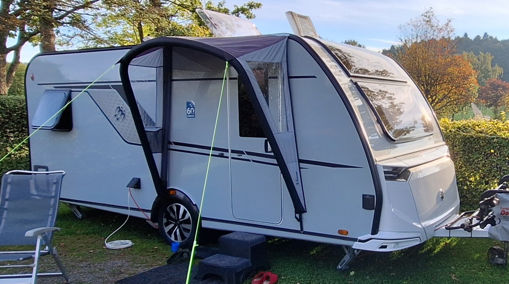 Avec l'auvent de porte Obelink Easy Air, vous créez en un instant une couverture pour l'entrée de votre caravane.