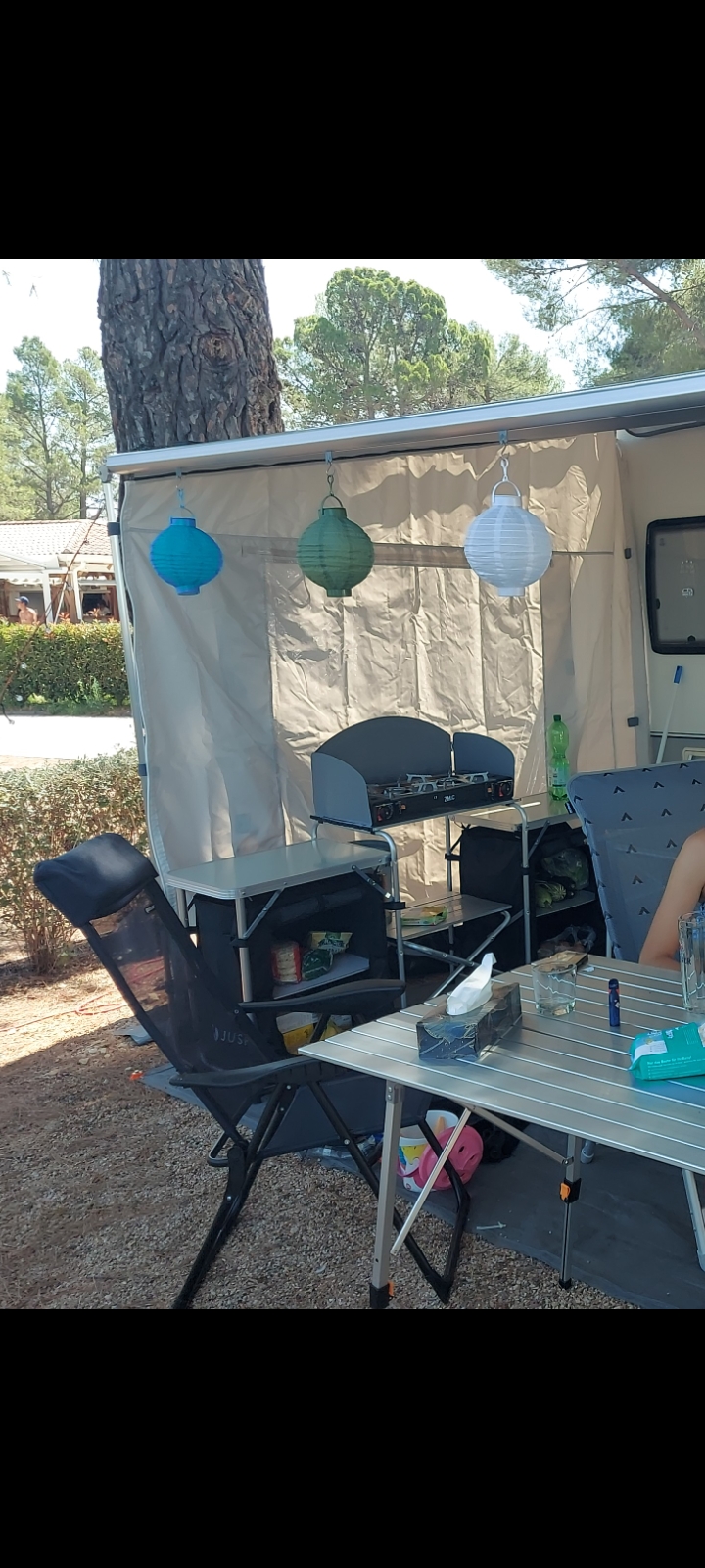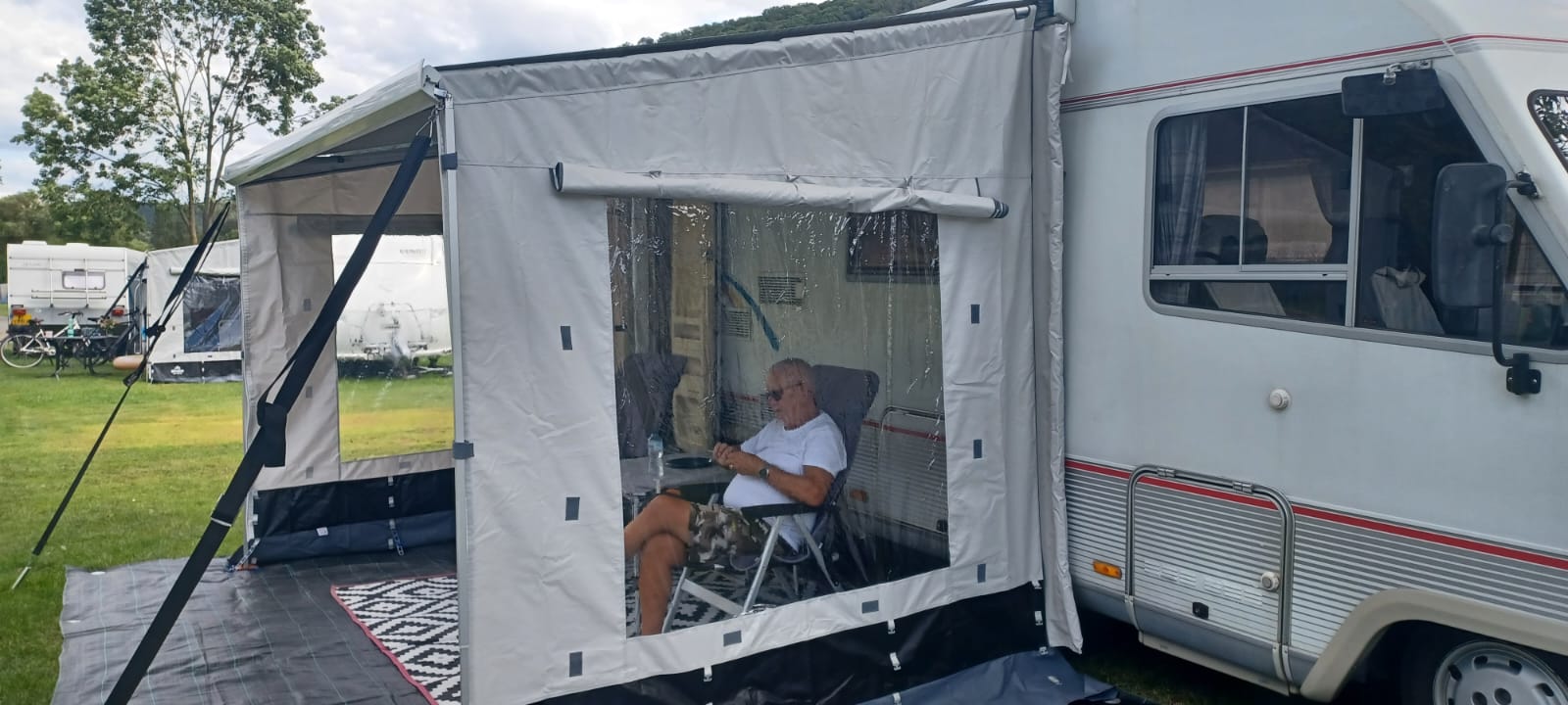Un coussin en mousse est cousu à l’arrière. Avec la barre à débuller optionnelle vous pouvez presser ce coussin en mousse contre la paroi de votre camping-car ou caravane. Ainsi, la paroi latérale s’adapte parfaitement à votre véhicule.