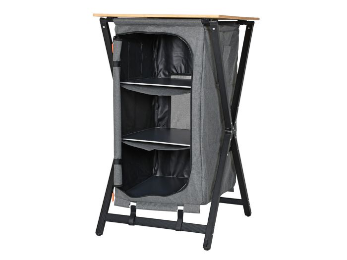 Grâce à sa conception pliable et à son sac de transport inclus, vous pouvez emporter facilement cette armoire sur n'importe quel emplacement de camping. Mesurant 60 x 57 x 98 cm, elle offre un volume de rangement surprenant tout en restant peu encombrant.