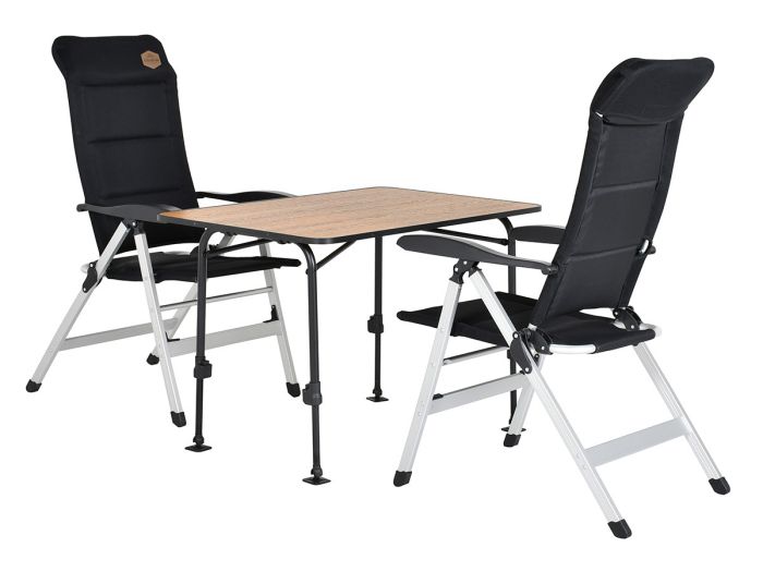 Cet ensemble comprend la table de camping Obelink Outdoor Superlight 100 et 2 fauteuils inclinables Obelink Corsa - Black bien confortables. Une solution idéale pour ceux qui souhaitent un set de mobilier de camping complet et confortable.