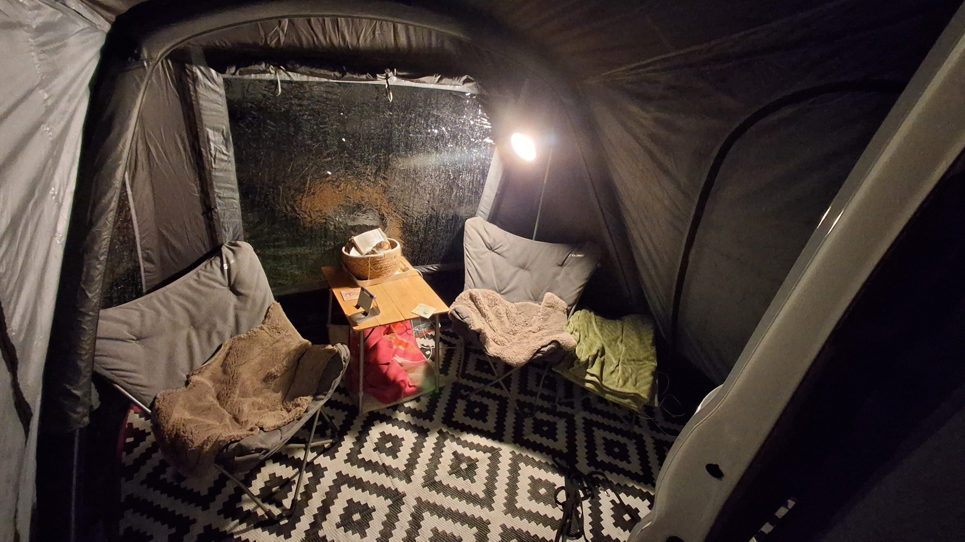 Utilise le Rio 280 comme un sas couvert pour l'entrée de la caravane ou du camping-car, ou comme un petit auvent compact pouvant accueillir deux chaises et une petite table.
