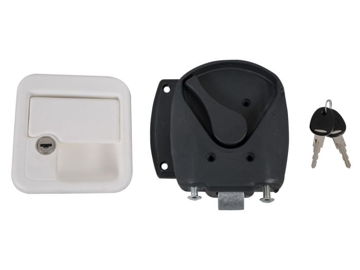 La serrure de porte carrée Obelink White est une serrure de porte simple composée d’une partie intérieure et d’une partie extérieure. Ces serrures de porte sont utilisées dans de nombreux camping-cars et caravanes.