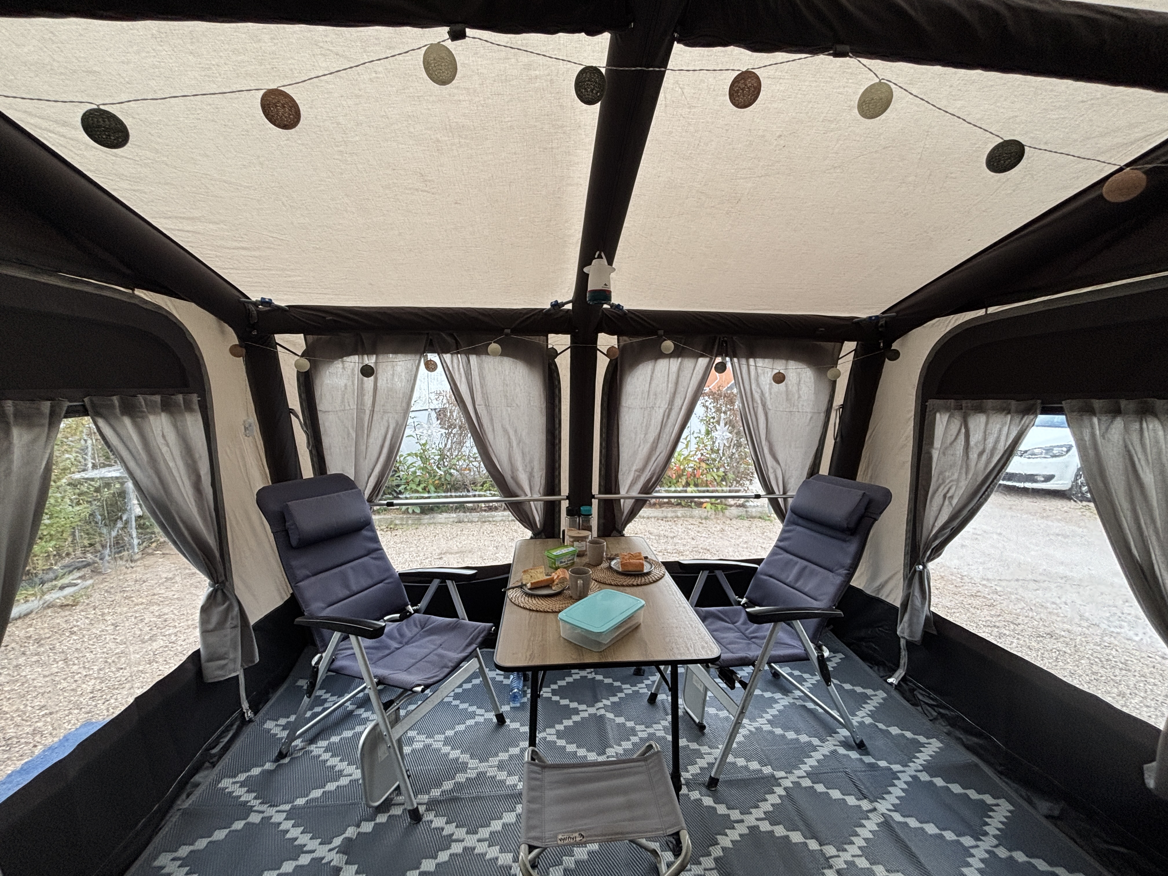 La tente peut être équipée d’une annexe optionnelle afin de l’agrandir.