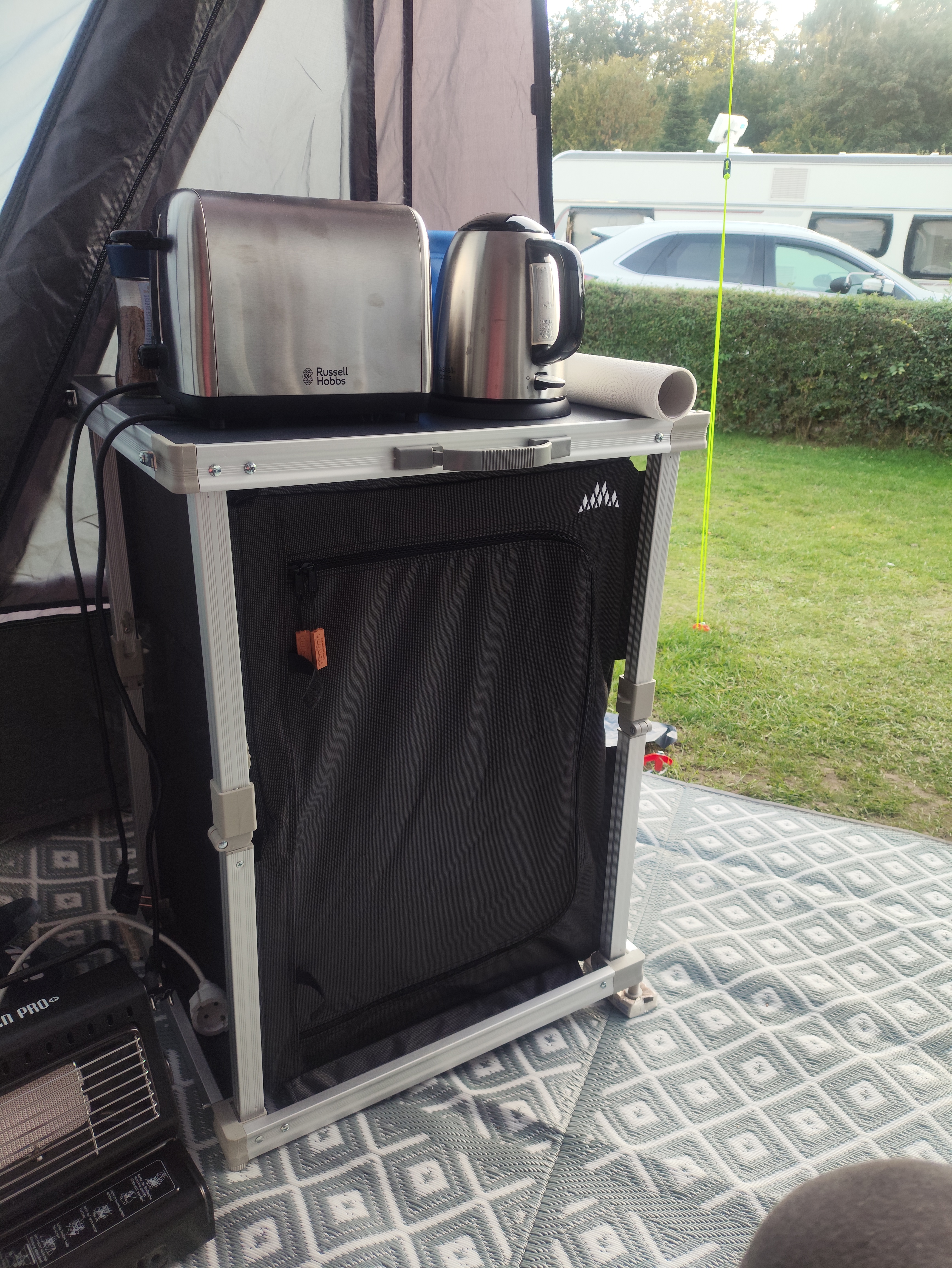 L'Obelink Veneto Quick est une armoire de camping robuste avec beaucoup d'espace de rangement et un plateau en MDF.