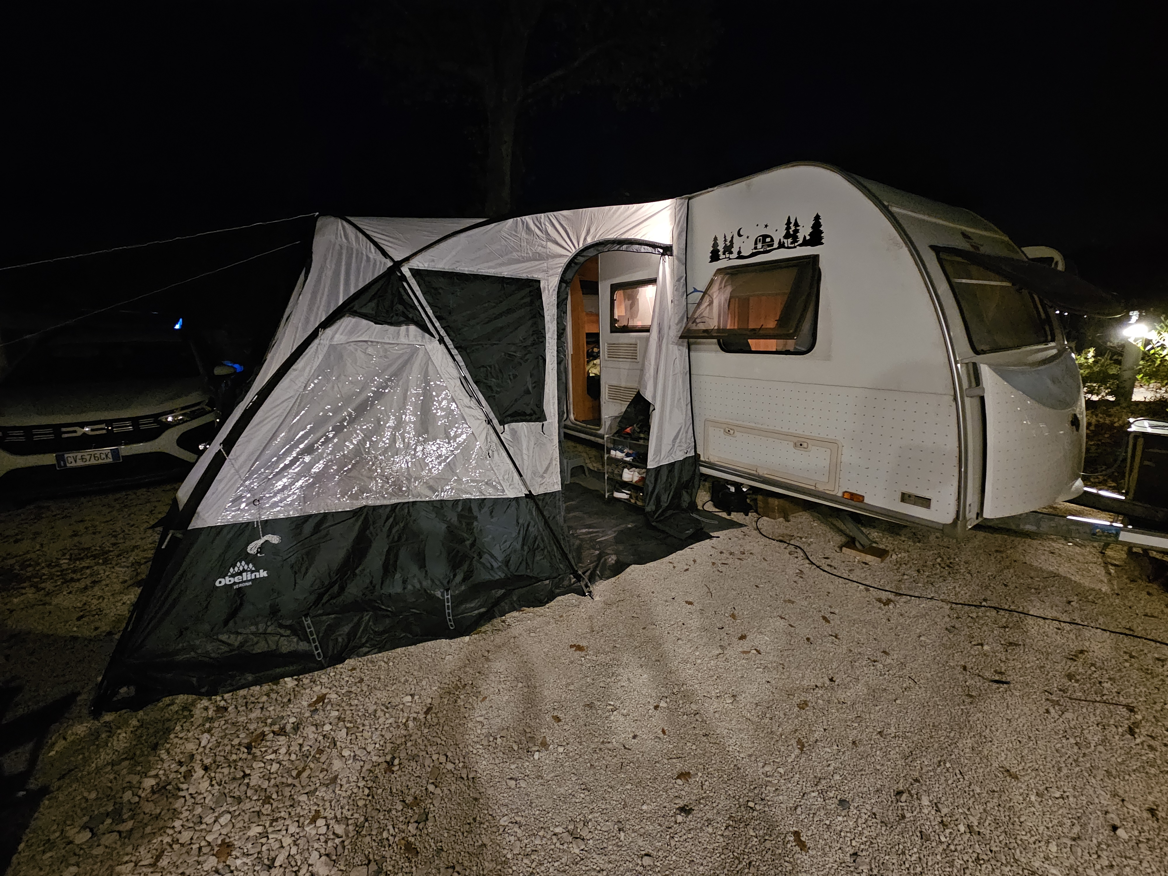 - Perfetta!!Appena montata la veranda abbiamo avuto un forte temporale. La veranda ha resistito benissimo! È spaziosa, c'entra un tavolo grande da 4 persone con le sedie, si monta in 15 minuti. Perfetta per roulotte piccole come la nostra, aumenta lo spazio vivibile di un bel po'. Non si vede niente all'interno quando è buio e le luci sono accese dentro.Veramente consigliata!!!
