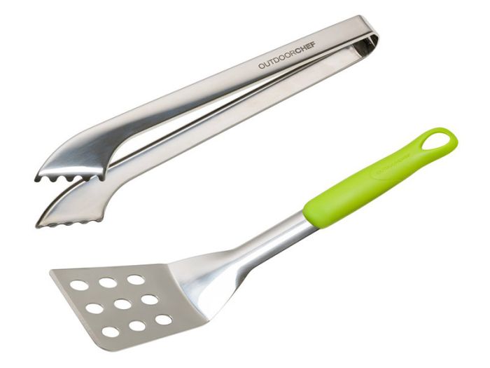 Le set d'ustensiles Outdoor Chef starter est un set simple qui se compose d'une spatule et d'une pince.