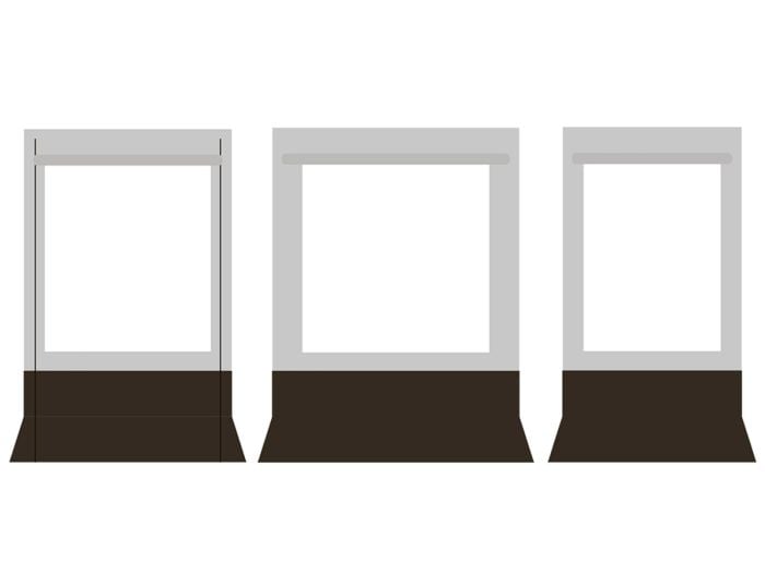 Étant donné que la paroi avant complète est composée de trois panneaux distincts, vous pouvez choisir quel panneau est placé où. De cette façon, vous pouvez placer le panneau de porte à gauche, à droite ou au milieu.