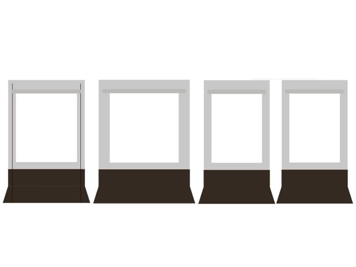 Étant donné que la paroi avant complète est composée de quatre panneaux séparés, vous pouvez choisir quel panneau est placé où. De cette façon, vous pouvez placer le panneau de porte à gauche, à droite ou au milieu.