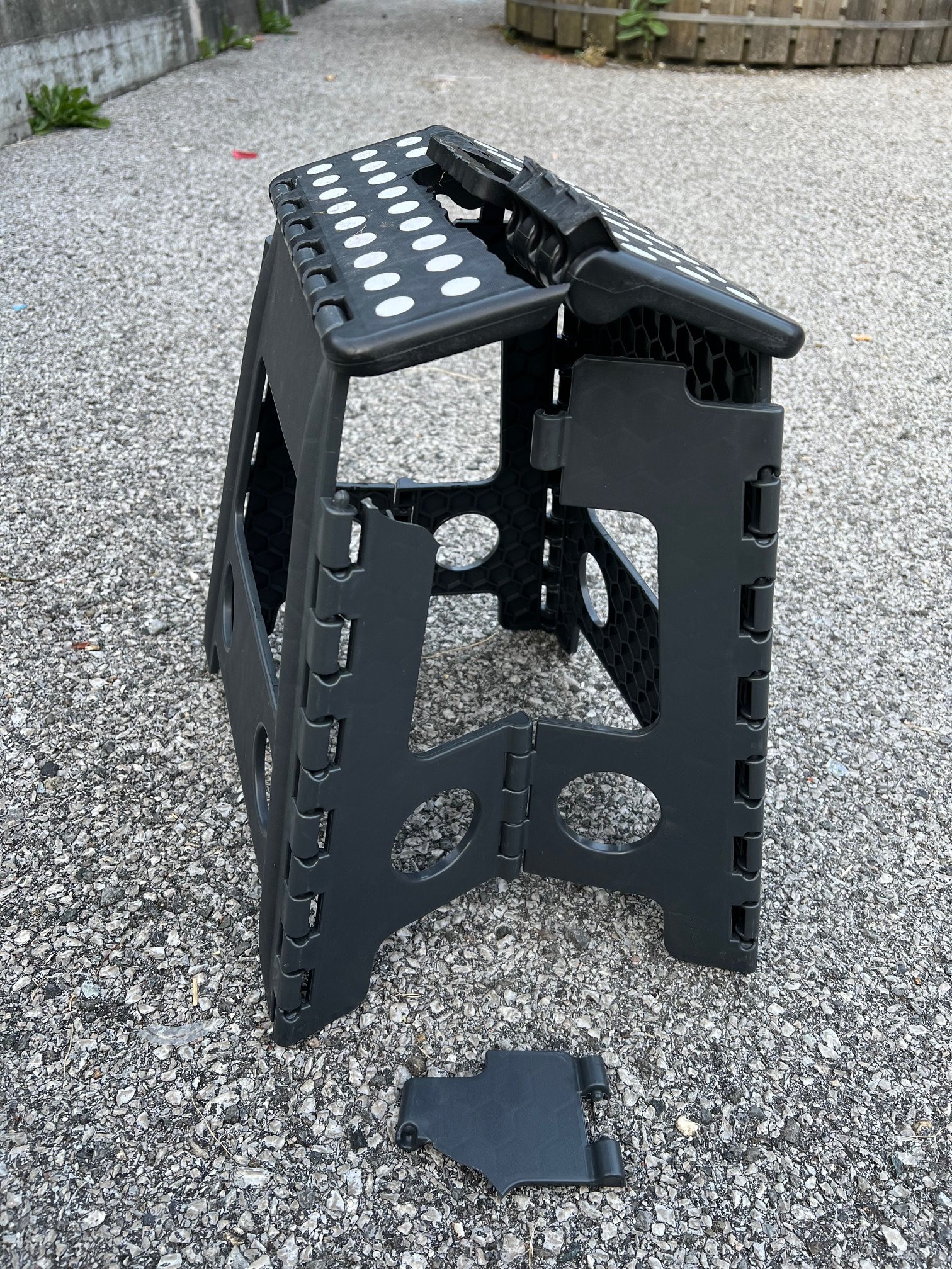 - Handig opstapjeHet krukje, opstapje is best handig. Goed plat opvouwbaar en niet te zwaar. Er brak wel gelijk een stukje plastic af, maar hij werkt nog prima. Als je met beleid erop gaat staan, kan het prima. Niet duur.