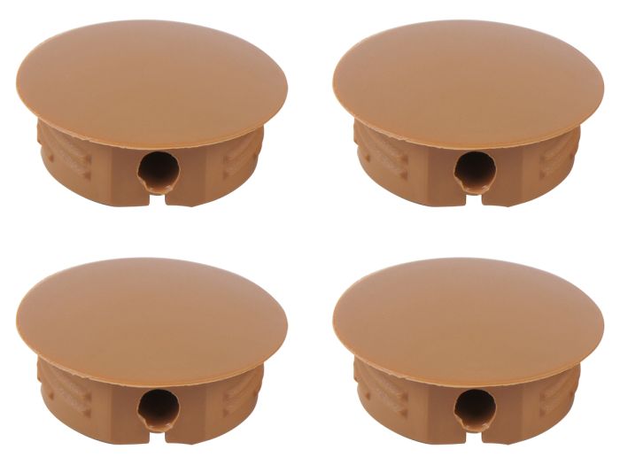 Lot de 4 raccords d'angle d'armoire Brown en plastique avec un capot. Les raccords d'angle sont souvent utilisés dans les caravanes, les camping-cars et les bateaux. Le diamètre de la pièce de montage est de 2,5 cm.