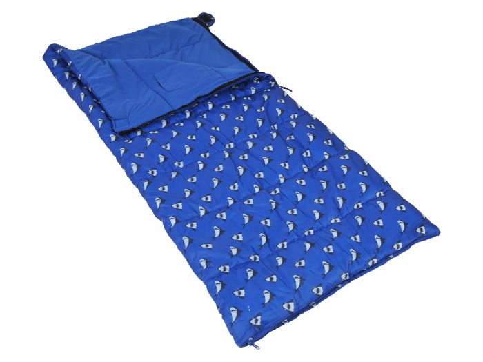 Le Regatta Roary Shark est un sac de couchage enfant confortable avec un joli imprimé bleu.