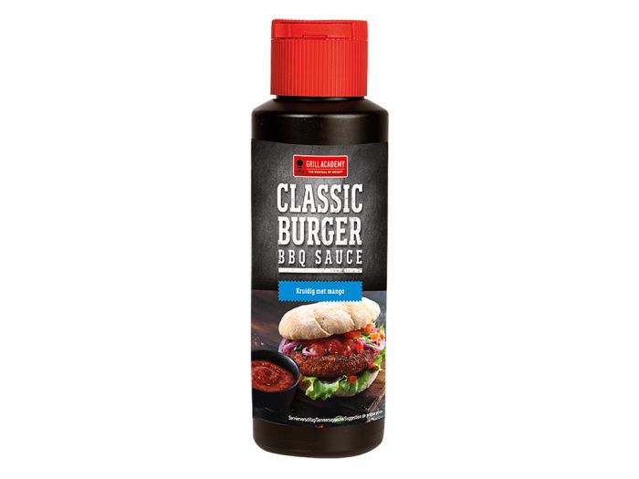 La sauce BBQ Classic Burger a une contenance de 300 ml et est sans gluten, végétalienne et halal.