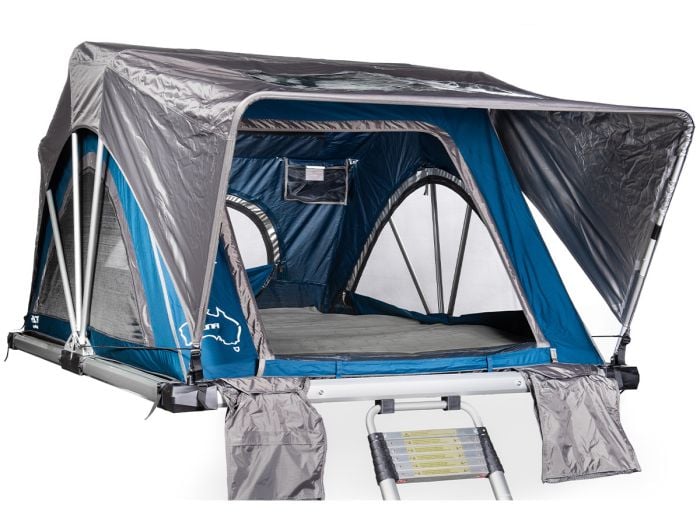 Cette tente de toit compacte pour une personne est le compagnon de voyage parfait lorsque vous voyagez seul. Sa taille compacte permet de la fixer facilement à presque toutes les voitures. Le dépliage de la tente est très simple grâce à l’échelle intégrée qui sert également de support à la tente. La Yuna Mini est livrée avec des supports de montage réglables. Le montage est similaire à celui d’un coffre de toit, le démontage se fait donc également en un clin d'œil.